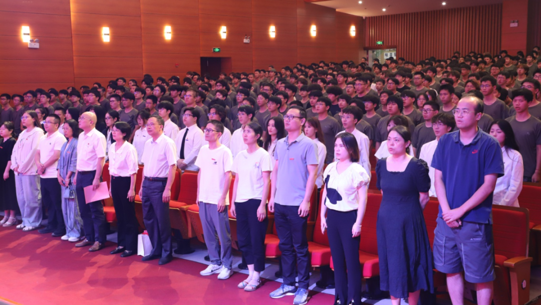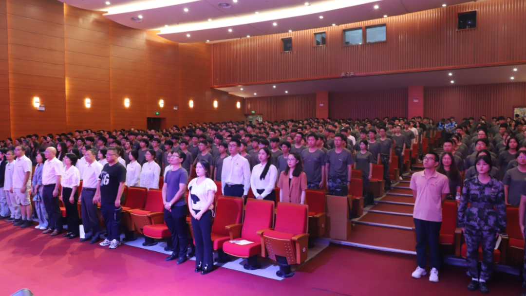 全体与会人员整齐肃立,高唱国歌。嘹亮的歌声回荡在礼堂,不仅展现了师生们饱满的精神风貌,更将炽热的爱国情怀深深镌刻在每一位新生的心中,为本次大会拉开庄重序幕。