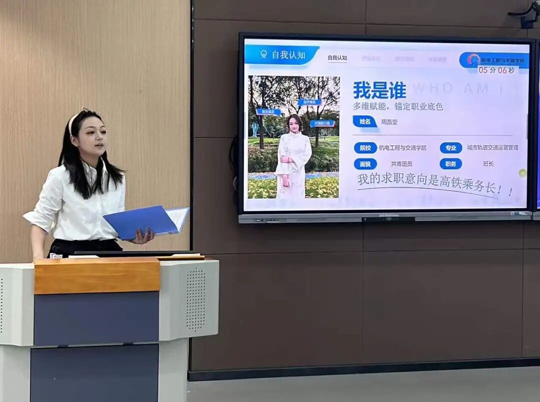 聚焦长期发展的选手们,将“技能考证”“职业探索” 等与未来竞赛规划深度融合,落地为具体路径。瞄准职场的选手们,结合目标岗位需求,亮出专业技能证书、实习成果与项目经历,纷纷展示自己与岗位的适配性。评委老师针对展示内容精准点评,从逻辑梳理、重点突出到表达技巧并给出细致优化建议。