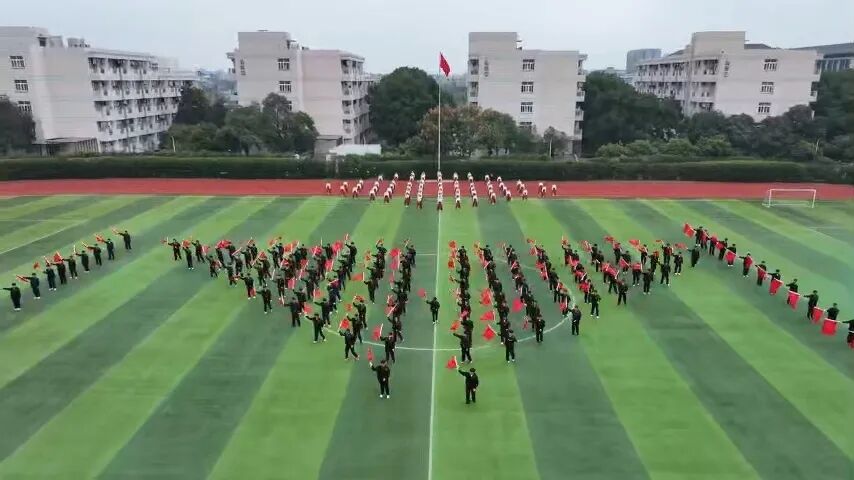 表演高潮部分,学子们以身躯为笔,在绿茵场上依次拼出“机电”二字与璀璨的五角星。这是集体协作对美的创造,更是青春理想最直白的抒发。从个体到集体,从字符到星辰,象征着每一位机电学子将个人梦想融入时代洪流,共同点亮技能报国的璀璨未来。这一艺术化的仪式,将家国情怀与职业理想深深烙印在学生心中。