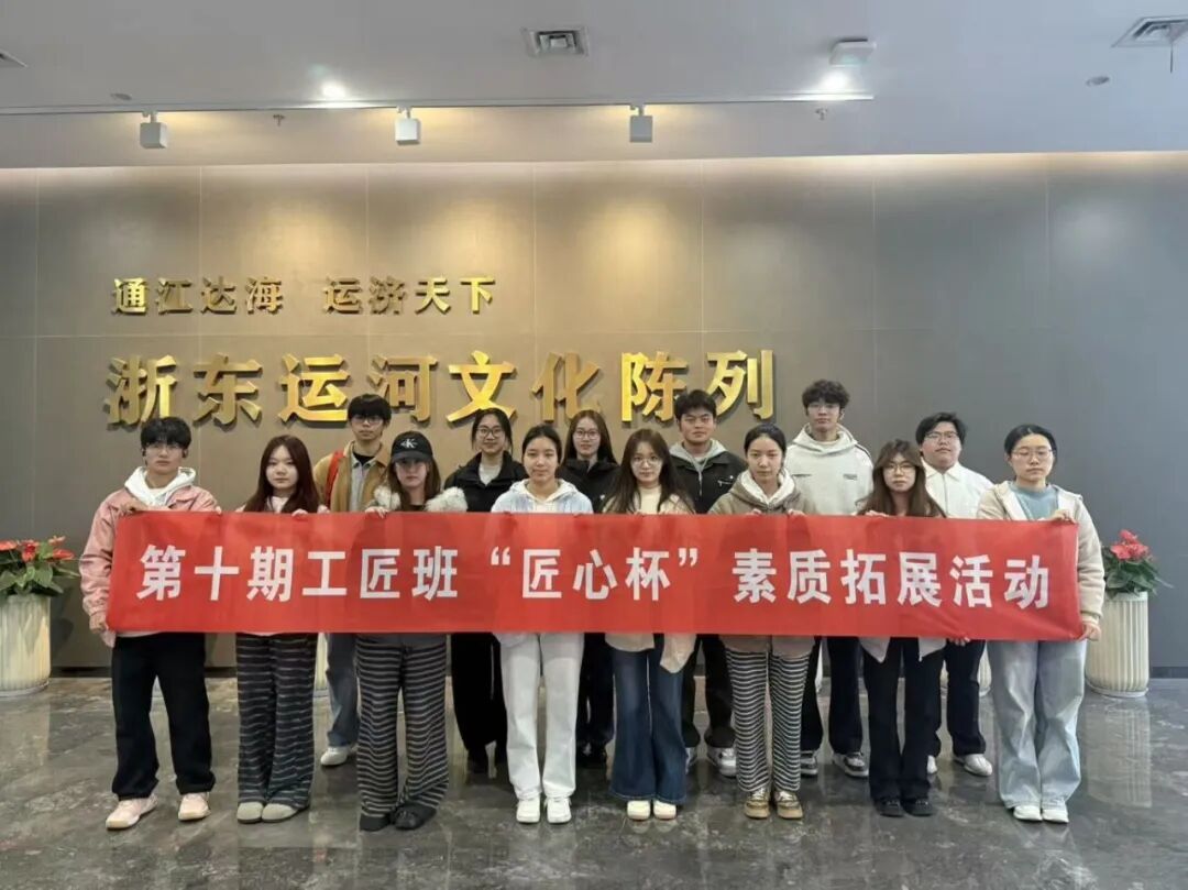 为深化工匠精神培育,推动专业实践与文化传承深度融合,11 月 29 日上午,机电工程与交通学院第十期工匠班 “匠心杯” 素质拓展活动暨 “古城新生・越见未来 — 在绍学子看绍兴” 系列活动,走进浙东运河博物馆,工匠班班主任朱晓瑜带队,工匠班学员共同参与这场 “行走的匠心课堂”。