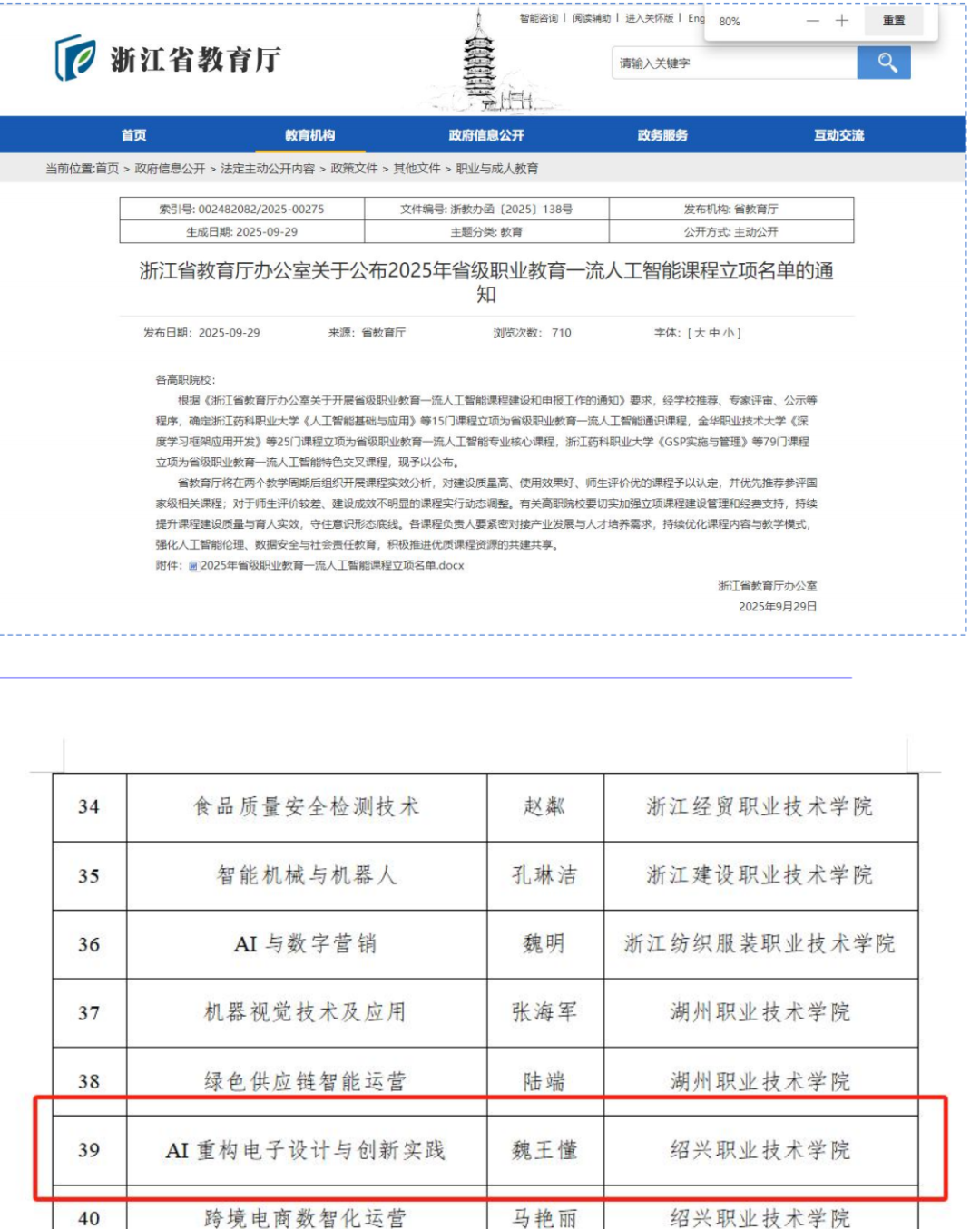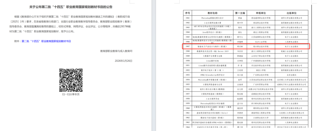 以课程建设为抓手,稳步提升教学质量,斩获省市多级成果。魏王懂老师负责的课程《AI重构电子设计与创新实践》立项省级职业教育一流课程,傅建钢老师负责的课程《UG模具设计》立项为省级继续教育精品课程,周淼老师负责的课程《城市轨道交通信号基础设备》立项为市级精品在线课程;教材建设实现重大突破,周灵彬老师负责的教材《智能电子产品设计与制作》(第2版)入选“十四五”国家规划教材。