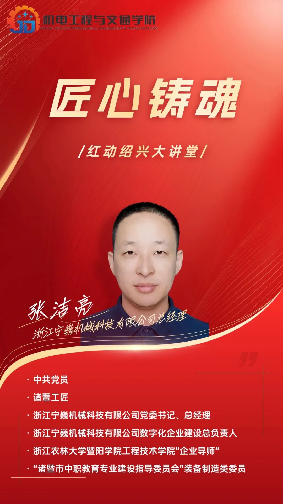 张洁亮,中共党员,现任浙江宁巍机械科技有限公司总经理、公司党委书记,同时担任浙江农林大学暨阳学院工程技术学院 “企业导师”、诸暨市中职教育专业建设指导委员会装备制造类委员。作为党建红色先锋带头人,始终以党员标准严格要求自身,将红色党建引领与企业生产技术发展、智能制造创新深度融合,深耕机械加工与智能制造领域十余年,从一线机加工车间逐步成长为兼具技术攻坚能力与管理引领能力的复合型骨干,以实际行动诠释党员的先锋模范作用。