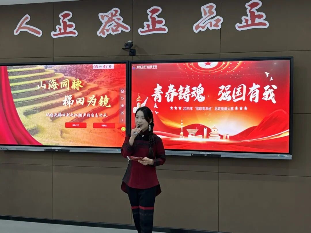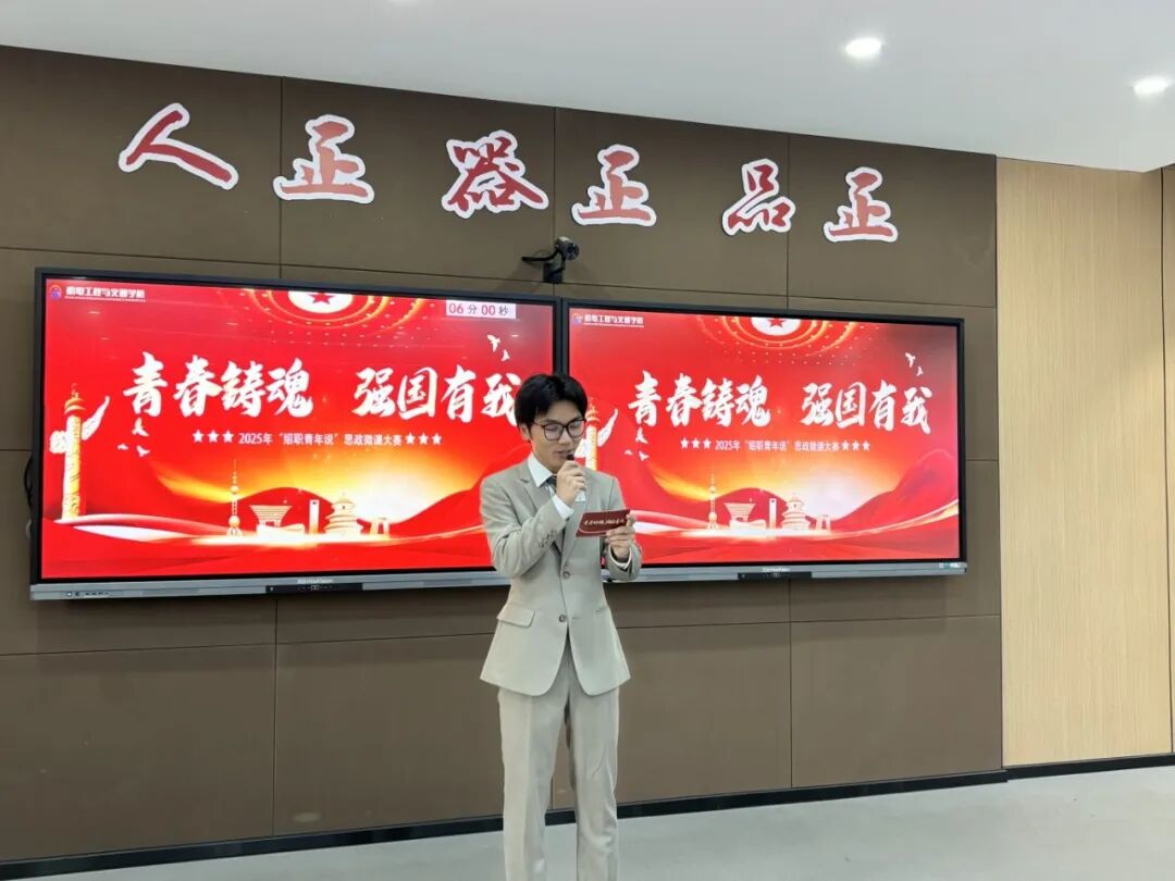 为深入学习贯彻党的二十大精神,推动党的创新理论入脑入心,3月28日下午,学院在鼎新楼403成功举办2025年度"绍职青年说"思政微课大赛院级决案。本次比赛以"青春铸魂 强国有我"为主题,共有来自各班的8名优秀学子同台竞技,通过生动鲜活的微课形式,将党的二十大精神有机融入青年成长故事,充分展现了新时代青年与党同心、跟党奋斗的坚定信念。比赛现场气氛热烈,选手们用青春话语传递理论温度,为现场师生带来了一场精彩的思想盛宴。